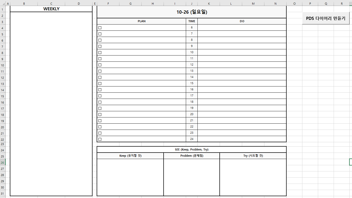 - PLAN/DO 섹션: 시간대별(6시~24시) 계획 및 실행 기록