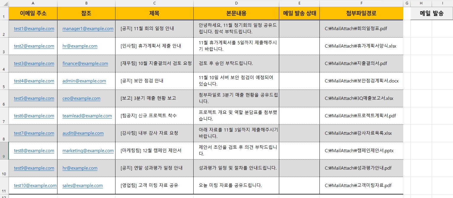 - ✅ 대량 이메일 자동 발송: 여러 건의 메일을 한 번에 발송